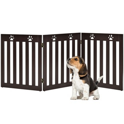 Pawhut Freestanding Pet Gate 4 Panel Wooden Dog Barrier Folding Safety Fence With Support Feet Up To 204cm Long 61cm Tall For Doorway Stairs Brown